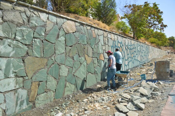 افشاری ادامه داد: عملیات اجرایی با استفاده از کفپوش بتنی پرسی طوسی و قرمز، سنگ و درپوش سنگی در دست اجرا است.