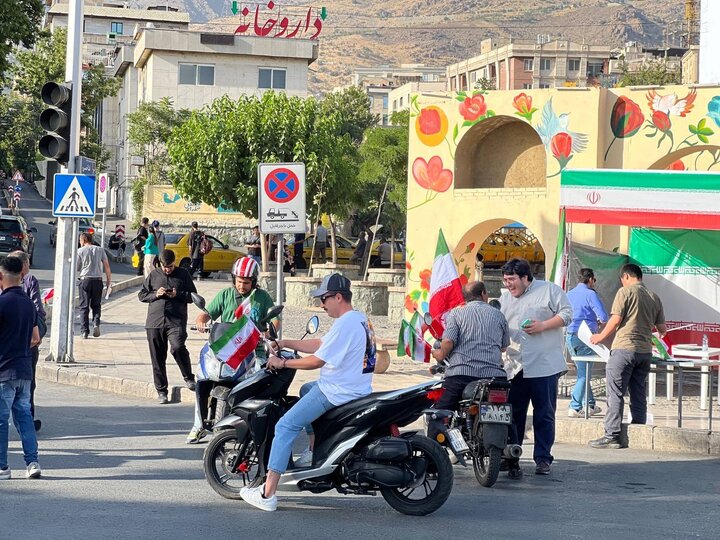 وی افزود: در این موکب همزمان با پخش موسیقی های حماسی، توزیع پوستر، پرچم ایران، پیکسل و شابلون، شعارهای حماسی بر روی خودروهای عبوری نوشته شد.