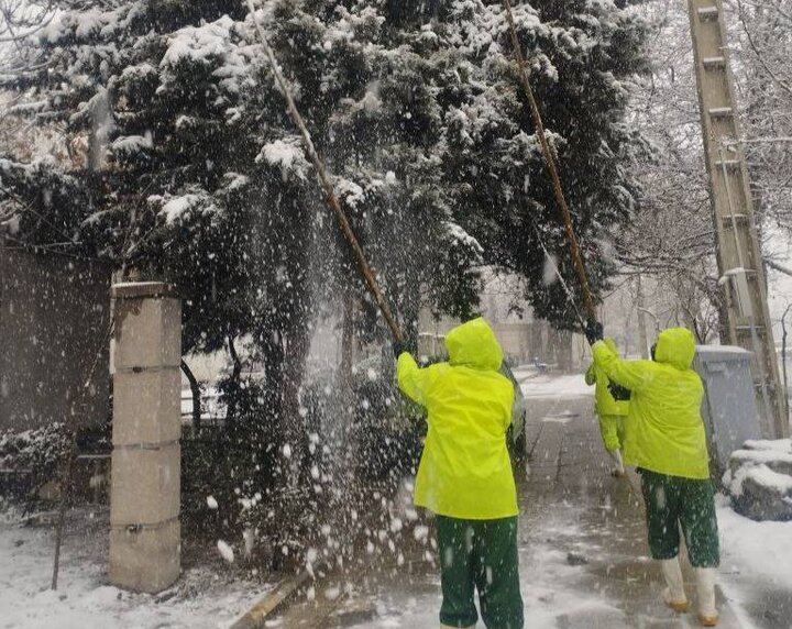 برف‌تکانی درختان و پاکسازی بوستان‌های منطقه یک در حال انجام است