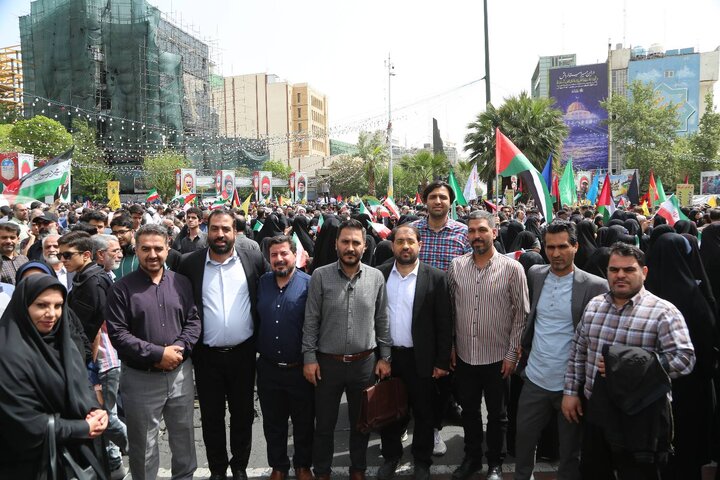 وی با تأکید بر اهمیت حمایت از مردم فلسطین در شرایط کنونی افزود: حضور پررنگ مردم در این مراسم، نشان‌دهنده هوشیاری ملت ایران در قبال جنایات رژیم صهیونیستی و همبستگی عمیق آنان با جبهه مقاومت است. این حضور یک پیام روشن دارد: ملت ایران هیچ‌گاه در برابر ظلم سکوت نمی‌کند و همواره پشتیبان ملت‌های مظلوم خواهد بود.