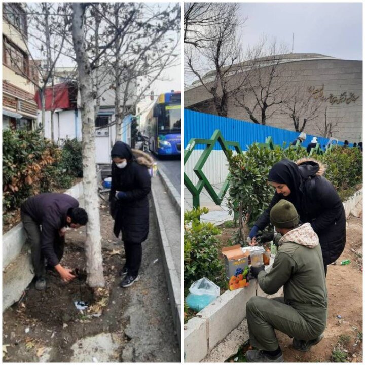 تغذیه درختان خیابان ولیعصر با روش چالکود