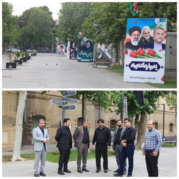 به گزارش شهر به نقل از روابطعمومی شهرداری منطقه۱۲، شهردار منطقه ۱۲ به همراه رئیس مرکز ارتباطات وامور بین الملل شهرداری تهران، معاون روابطعمومی این مرکز و جمعی از معاونان ومدیران، فضاسازی محوطه وزارت امور خارجه همزمان با شهادت سید ابراهیم رئیسی، رئیسجمهور و همراهانش را مورد ارزیابی قرار داد.