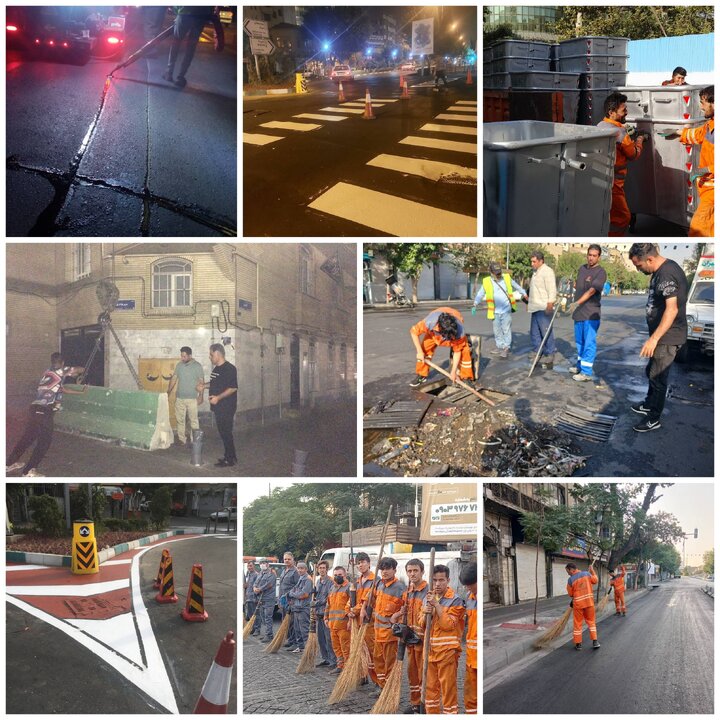 به گزارش شهر به نقل از روابط عمومی شهرداری منطقه ۱۲، در همین راستا معاونت خدمات شهری ومحیط زیست منطقه با استقرار ۲۰ دستگاه خودرو واترجت وتانکر و ۳۵۰ نیروهای پاکبان از روز قبل شستشو، لایروبی انهار و پاکسازی محور شهید مصطفی خمینی، جمهوری، بهارستان و ۱۷ شهریور و اداره زیباسازی منطقه نیز رنگ آمیزی نرده ها ،جداول و جداره های نازیبا را اجرایی کرد.