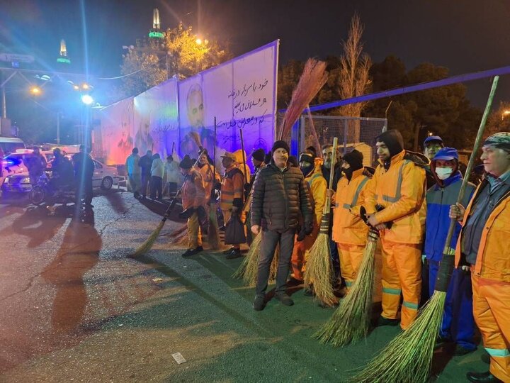 همزمان با پنجمین مراسم سالگرد شهادت سردار سپهبد حاج قاسم سلیمانی که امروز ۱۳ دی ماه در مصلی تهران برگزار شد، نیروهای خدمات شهری و کارگری شهرداری منطقه۱۲ تهران نیز طبق پهنه تعیین شده درمحل حاضر و نسبت به رفت و روب و نگهداشت آن اقدام کردند.