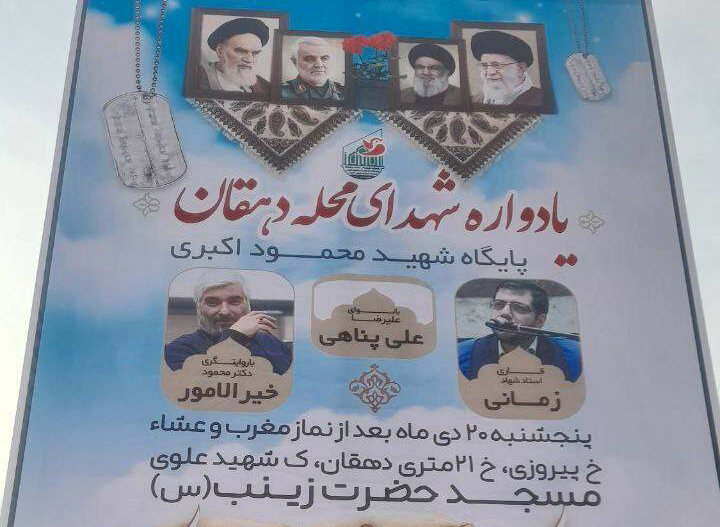 به گزارش شهر به نقل از روابط عمومی شهرداری منطقه ۱۳، علی‌اصغر ژولیده، معاون امور اجتماعی و فرهنگی شهرداری منطقه، اعلام کرد که یادواره معنوی شهدای محله دهقان پنجشنبه‌شب، ۲۰ دی‌ماه، پس از نماز مغرب و عشاء با همکاری پایگاه شهید محمد اکبری، واقع در خیابان پیروزی، خیابان امیری دهقان، برگزار شد.
