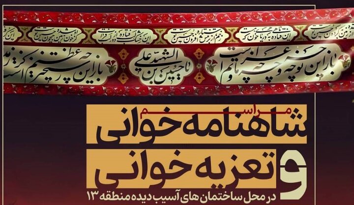 به گزارش شهر به نقل از روابط عمومی شهرداری منطقه ۱۳، سید علی موسوی‌مقدم، سرپرست معاونت امور اجتماعی و فرهنگی منطقه با اشاره به برگزاری آیین‌های سنتی شاهنامه‌خوانی و تعزیه‌خوانی در ساختمان‌های آسیب‌دیده جنگ ۱۲ روزه گفت : این برنامه فرهنگی از ۲۸ مرداد تا اول شهریورماه در معابر مختلف از جمله خیابان سی‌متری نیروهوایی و خیابان تهران‌نو برپا خواهد شد و شامل اجرای پنج مجلس تعزیه از جمله حضرت علی‌اکبر(ع)، حضرت عباس(ع)، امام حسن(ع)، امام حسین(ع) و حضرت رقیه(س) است.