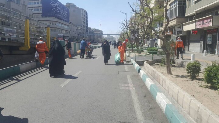 نظافت مسیر راهپیمایی روز قدس با فعالیت پاکبانان منطقه ۱۶