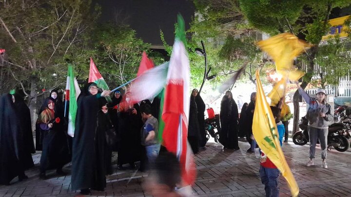 به گزارش شهر به نقل از روابط عمومی شهرداری منطقه ۱۶ ، در پی پاسخ دلاورمردان نیروی هوافضای سپاه به جنایتهای اخیر رژیم خبیث صهیونیستی در حمله به بخش کنسولی سفارت جمهوری اسلامی ایران در دمشق و به شهادت رساندن جمعی از فرماندهان و مستشاران نظامی کشورمان در سوریه ، طی عملیات «وعده صادق» با رمز مقدس «یا رسول الله (ص)» با موفقیت اهدافی را در داخل سرزمینهای اشغالی با دهها فروند موشک و پهپاد مورد اصابت قرار دادند ؛ که دل آزادمردان و زنان سراسر دنیا شاد شد، مردم ولایتمدار منطقه ۱۶ در حمایت از حمله مقتدرانه نیروهای مسلح به رژیم اشغالگر اسرائیل در میدان نازی آباد به جشن و شادی پرداختند.
