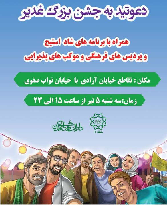 شهردار منطقه ۱۷، گفت: همزمان با فرا رسیدن عید سعید غدیر خم و مهمانی بزرگ ده کیلومتری غدیر، پردیس فرهنگی، خدماتی و پذیرایی دارالشهدای تهران میزبان عاشقان ولایت در این مراسم با شکوه خواهد بود.