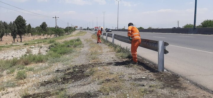 ضمن اینکه قطعات فضای سبز بلوار یادگار امام، پارکینگ غربی و شمالی حرم، بوستان های مسافر و یادگار و بزرگراه های شهید هاشمی و خلیج فارس توسط ۵۰ نیروی کارگری فضای سبز، پاکسازی، حاشیه زنی، علف کشی و نخاله کشی آنها انجام شد.