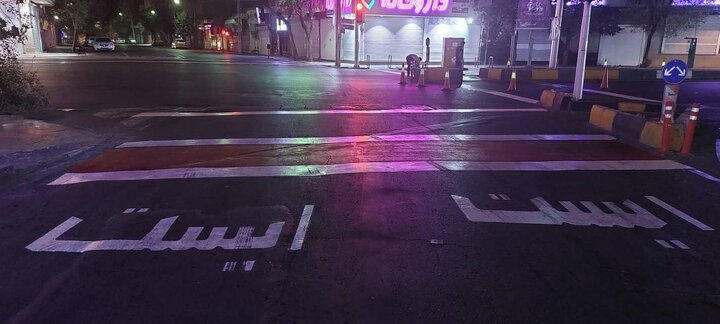 وی ادامه داد: تقاطع خیابان های شهید لطیفی، مهران، ابوریحان و شهید صمدی (سه راه شریعتی) به طول حدود ۲۰۰ متر با رنگ دو جزئی، ایجاد بستر رنگ آمیزی شده به مساحت ۵۵ متر مربع با رنگ سرد ترافیکی، احیای نوشتاری با عنوان ایست توسط معاونت حمل و نقل ترافیک منطقه انجام شد.