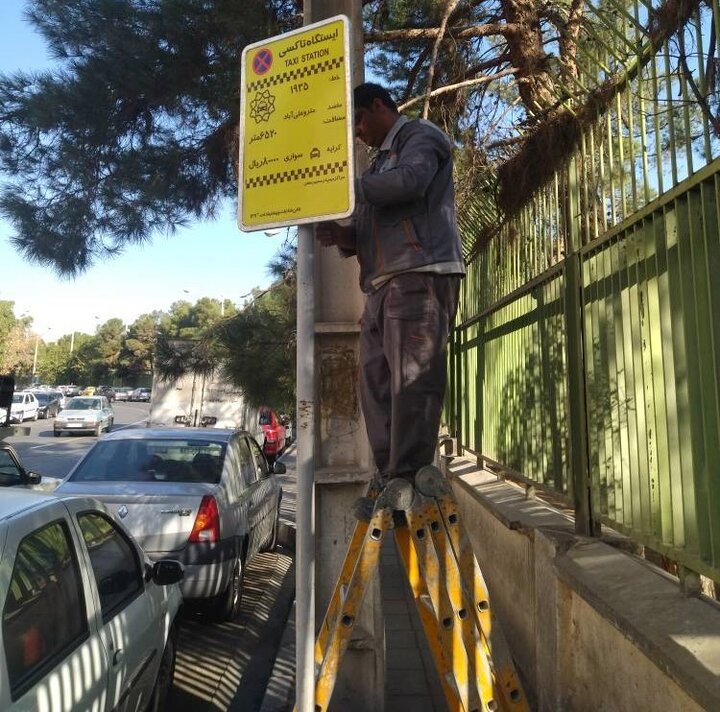 تابلوهای ترافیکی فرسوده در پایانه‌های تاکسیرانی منطقه ۱۹، در راستای زیبایی بصری، راهنمایی و اطلاع‌رسانی مسیرها تعویض و نونوار شدند.