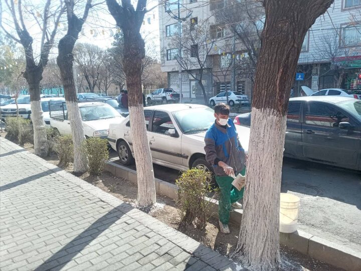 معاون خدمات شهری و محیط زیست تصریح کرد: در این طرح درختان روبه زوال و کهنسال در اولویت برنامه کاری قرار گرفته و به صورت ویژه با ترکیبی از رنگ سفید که دور کننده آفات است و سم استاندارد و چسب چوب تنه درختان را به فاصله یک متر از طوقه به محلول مورد نظر آغشته و تیمار می کنند.