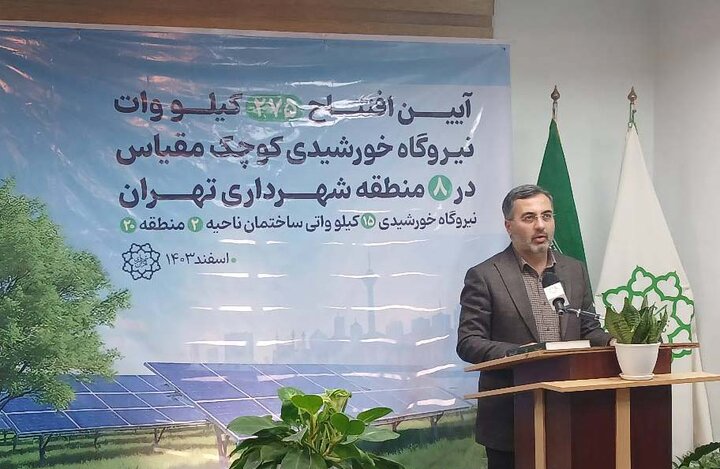 گفتنی است صبح امروز ۲۰ اسفندماه، همزمان با آیین افتتاح بزرگترین نیروگاه اداری خورشیدی شهر تهران به ظرفیت ۱۰۰ کیلووات در ساختمان شماره ۲ شهرداری تهران، نیروگاههای آماده بهرهبرداری ۸ منطقه شهری، شامل مناطق ۴، ۷، ۸، ۱۰، ۱۵، ۲۰ و ۲۱ افتتاح شد که این نیروگاهها، جمعاً ۲۷۵ کیلووات انرژی پاک تولید خواهند کرد.