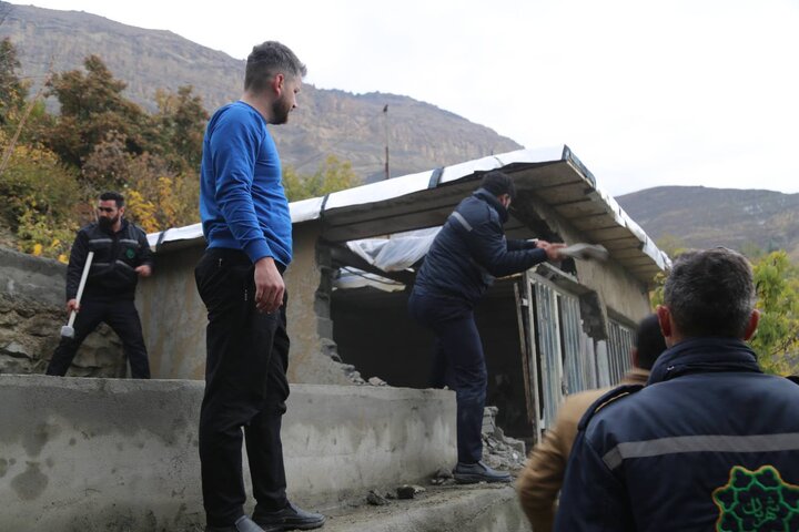 سرپرست منطقه ۲۲ یادآور شد: همکاران ما در اداره حریم به محض اطلاع از ساخت ۳ بنای غیرقانونی در متراژ بالای ۵٠ مترمربع و دیوارکشی ۱٠٠ الی ۱۵٠ مترمربعی مستحدثات در روستای کشار بالا و اخذ دستور قضائی با همکاری نیروی انتظامی، جهاد کشاورزی، نماینده دادستان و حریم بانان مناطق ۵،۱۸،۱۹ به محل موردنظر اعزام و با حضور بیش از یکصد نفر از عوامل اجرایی نسبت به تخریب آن اقدام کردند.