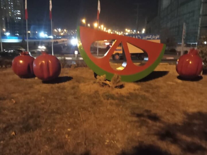 فصیح افزود: به مناسبت فرا رسیدن طولانی ترین شب سال و به منظور فضاسازی شایسته متناسب شب یلدا، واحد زیباسازی منطقه، عملیات اجرا نصب المان ویژه یلدا را با نصب المان انار و هندوانه انجام داده است.