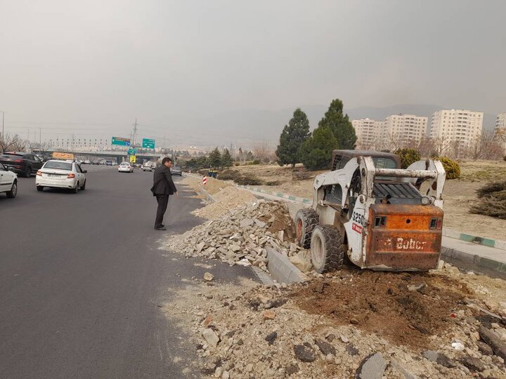 تسطیح و جمع آوری خاک و نخالههای شرق به غرب بزرگراه شهید خرازی
