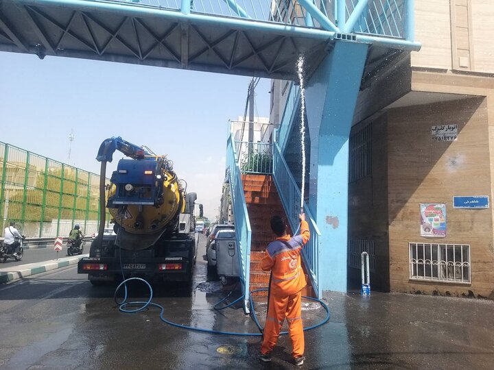 پایگاه خبری رویداد تهران » مناطق » منطقه 8 » شست‌وشوی پل‌های عابر پیاده سطح ناحیه۳ منطقه ۸
