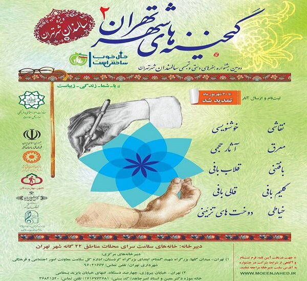 به گزارش روابطعمومی شهرداری منطقه۸؛ دومین رویداد "گنجینههای شهر تهران" در قالب جشنواره هنرهای دستی و تجسمی سالمندان بالای ۶۰سال منطقه۸ برگزار میشود.