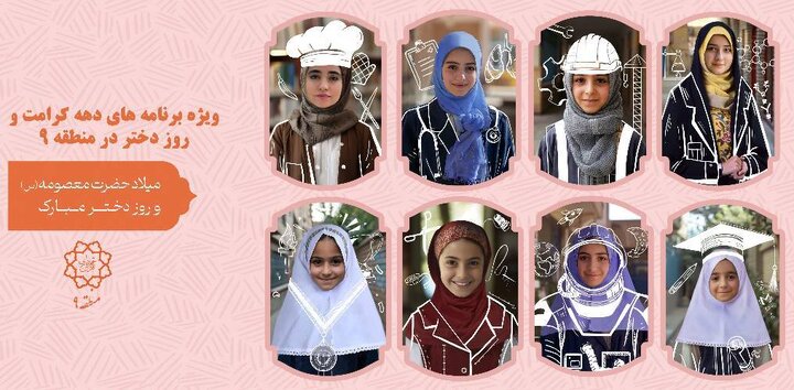 مرتضوی در ادامه توضیح داد: در همین راستا جشن ویژه روز دختر و تکریم از دختران در محلات منطقه۹، برگزاری جشن روز دختر ویژه دختران کانون نوجوانان مناطق ۲۲گانه با همکاری اداره آموزشهای شهروندی منطقه در مجموعه فرهنگی، ورزشی و اجتماعی کوثر، جشن تقدیر از ۲۰۰ دختر شرکت کننده در پویش ماه مهربانی، اجرای جشن و مسابقه پدر و دختری در سرای محلات، نواحی و مجموعه شهربانو در ایام دهه کرامت اجرا میشود.