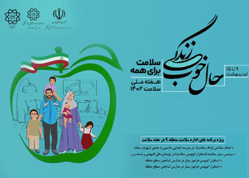 ویژه برنامه های هفته سلامت با شعار "حال خوب زندگی" از نهم لغایت پانزدهم اردیبهشت در منطقه ۹ اجرا می شود.